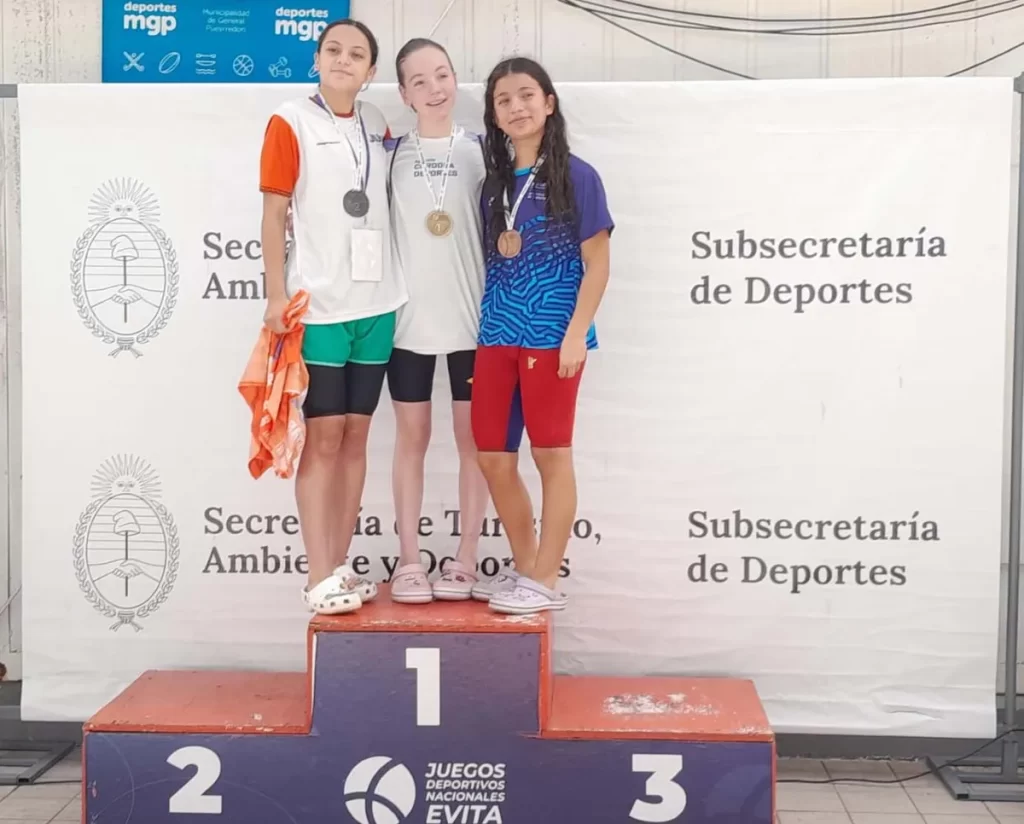 Durante la primera jornada de competencia en la Final de los Juegos Deportivos Nacionales Evita en Mar del Plata, la nadadora Martina López luego de una destacada actuación obtuvo medalla de Plata en 200 metros libre, en Natatorio del Complejo del Ente Municipal de Deportes y Recreación (EMDER) de esa ciudad.